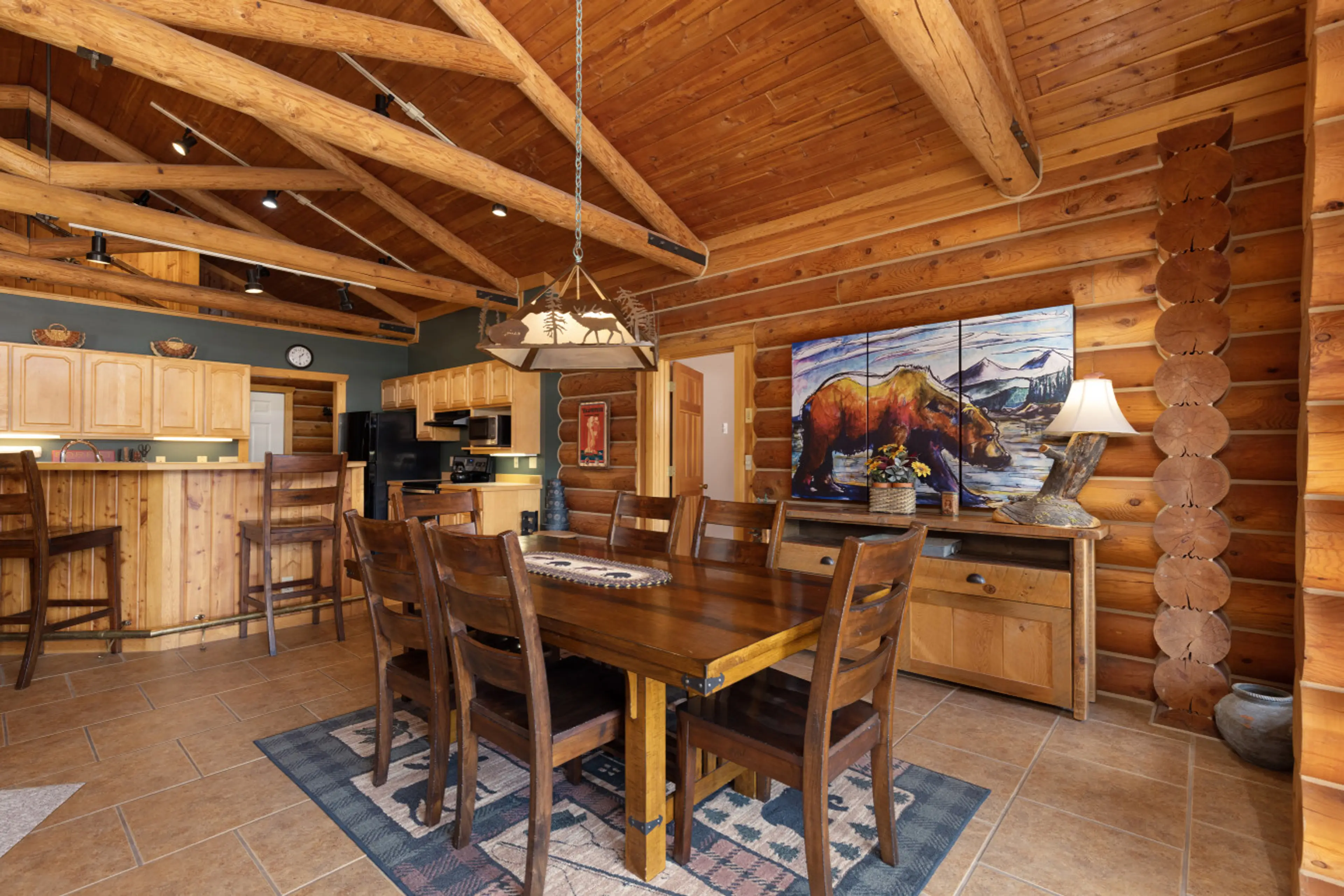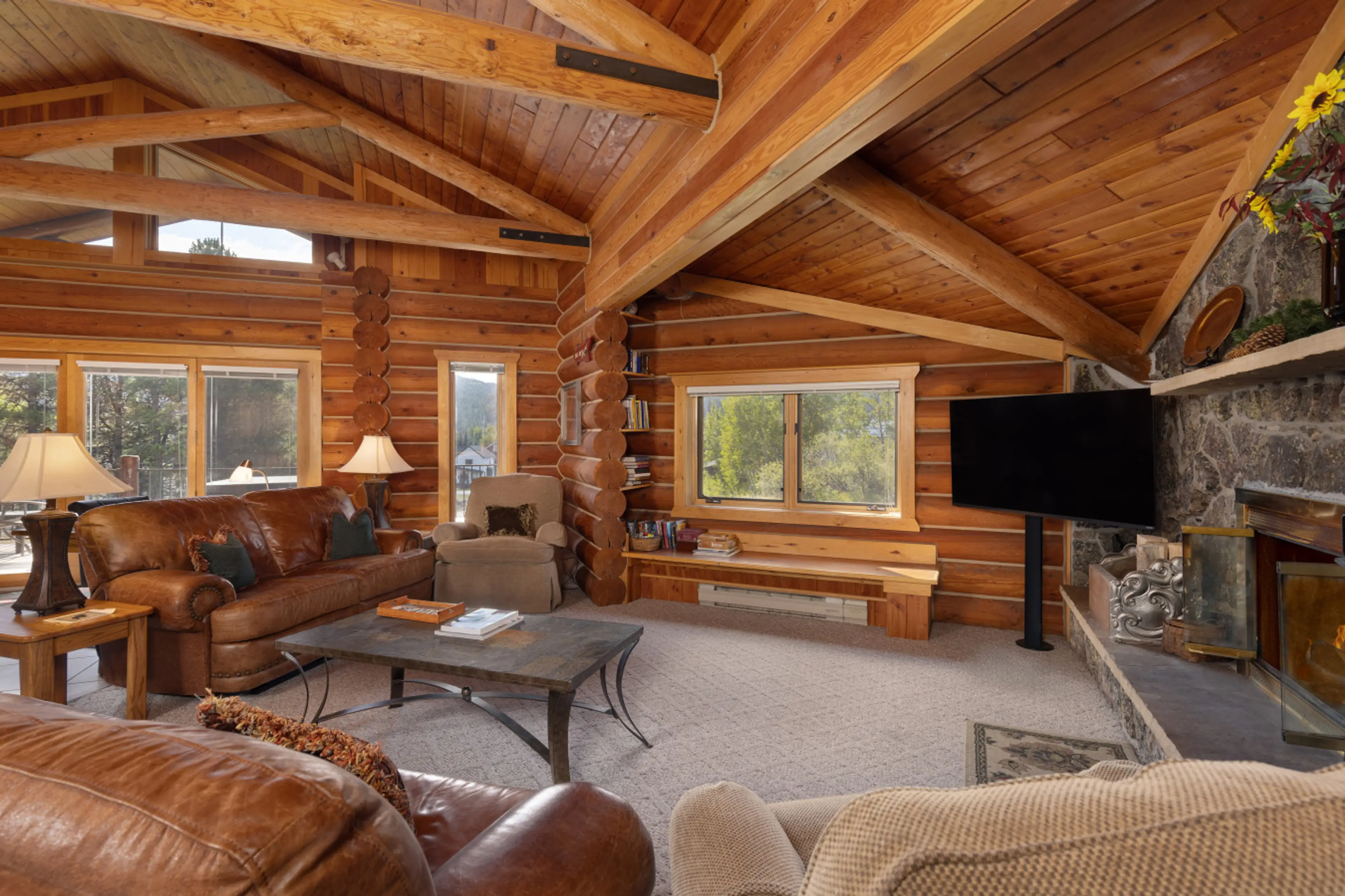 Beautifully updated interiors for an even more enjoyable experience! Enjoy rest and relaxation in this cozy log cabin with stunning views and wood burning fireplace to stay warm as you watch the snow fall. Open floor plan concept with logs and country rustic feel with plenty of space for your fami...